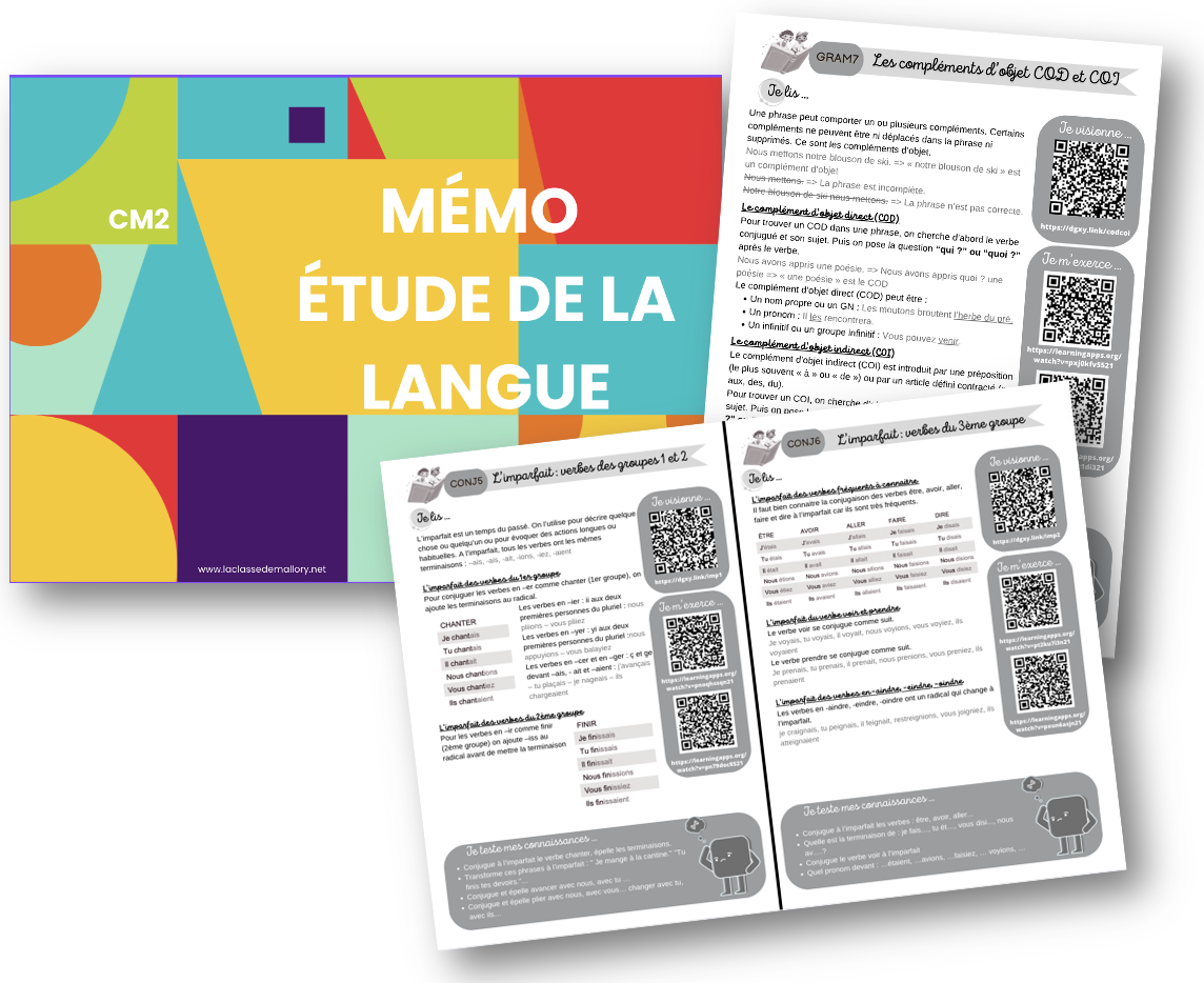 Vous trouverez dans cet article la version 2024-2025 des mémos de leçons de français pour les CM2. Ces-derniers comprennent :