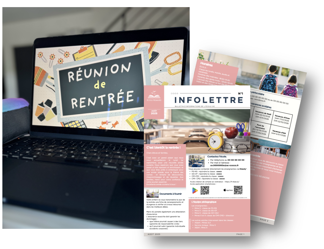 Vous trouverez également l’infolettre école de rentrée que je transmets par mail la semaine précédant la rentrée à toutes les familles (je suis directrice).